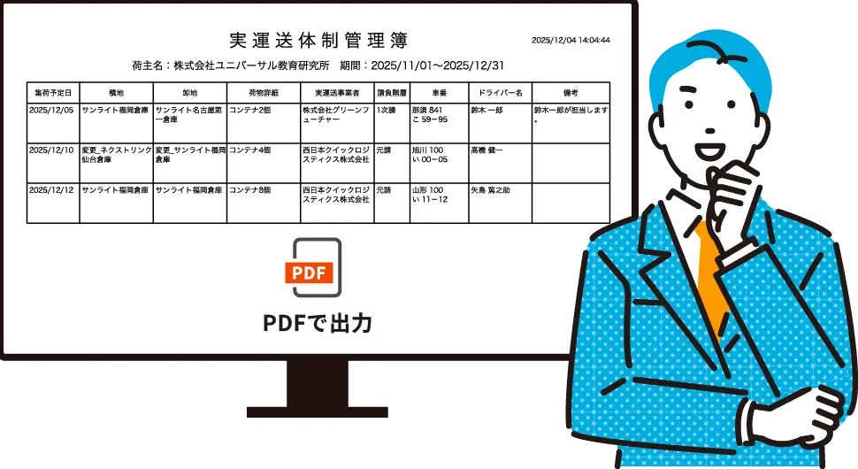 実運送体制管理簿をPDFで出力